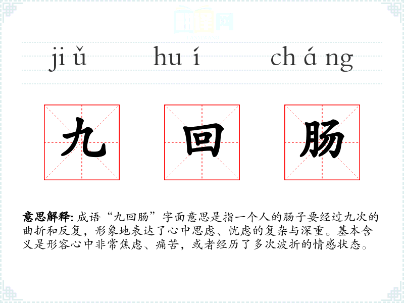 在**文化中,成语常常承载着古人的智慧与情感,尤其是对人性、情感与道德的深刻理解。“九回肠”反映了古代文人对情感复杂性的重视,现代社会中仍然适用,尤其在面对生活的压力和选择时,许多人仍会感受到类似的内心挣扎。