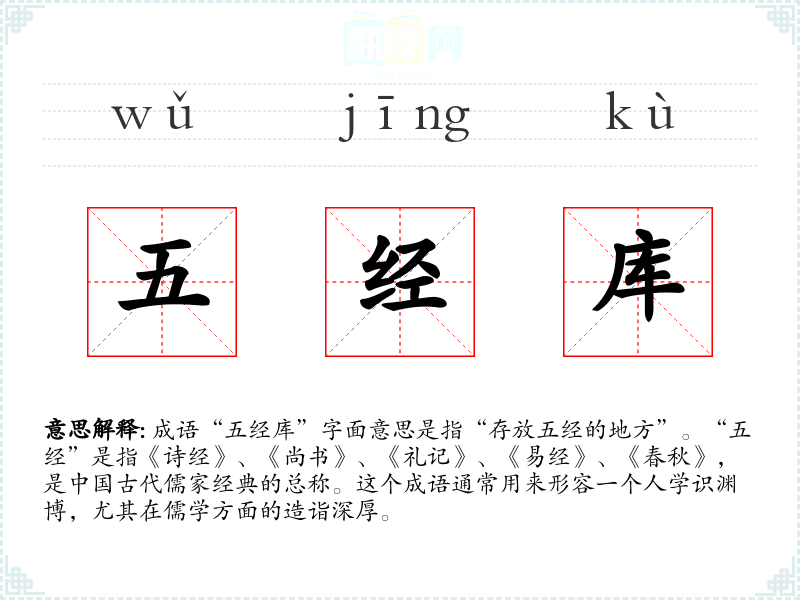 “五经库”并不是一个传统的成语,而是对“五经”这一概念的延伸和引申。历史上,五经代表了儒家经典的核心,许多文人墨客都以掌握五经为荣。因此,五经库可以看作是一个象征,代表了学问的储藏和传承。