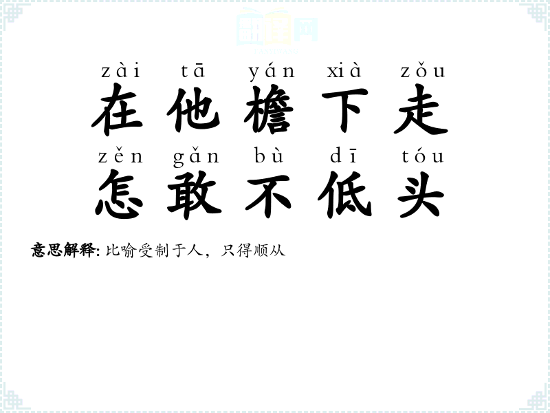 既:已经,已然;檐:屋檐。比喻在强大的压力之下,不得不向对方屈服。指依附或有求于人,只得委曲求全。 |