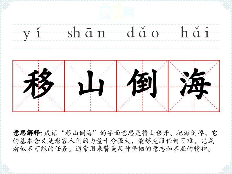 - 日常对话:可以在鼓励朋友面对困难时使用,比如:“只要你努力,就一定能移山倒海。”