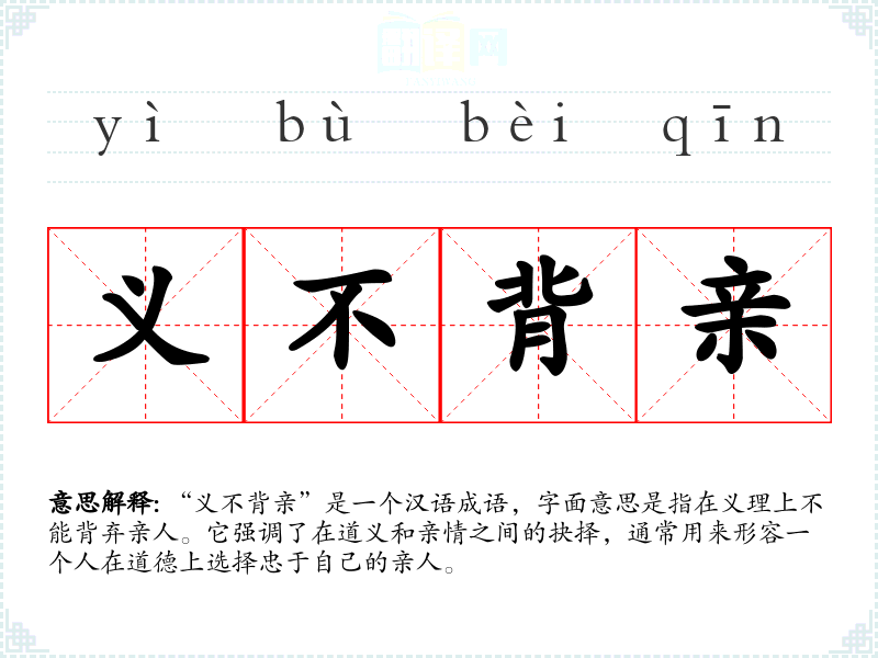 | 义不背亲 | 背:违背。讲仁义之人是不违背父母意愿的。 |