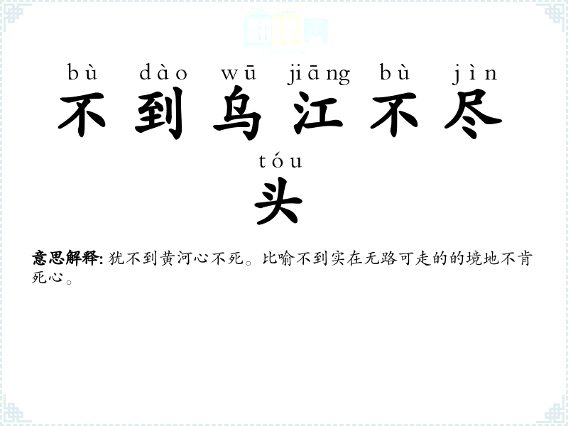 | 不到乌江不肯休 | 犹不到黄河心不死。同“不到乌江不尽头”。 |