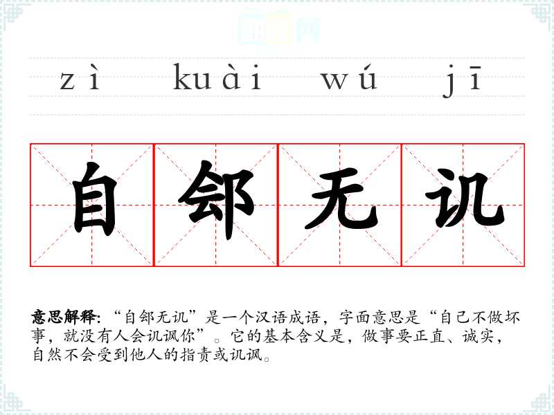 “自郐无讥”是一个汉语成语,字面意思是“自己不做坏事,就没有人会讥讽你”。它的基本含义是,做事要正直、诚实,自然不会受到他人的指责或讥讽。