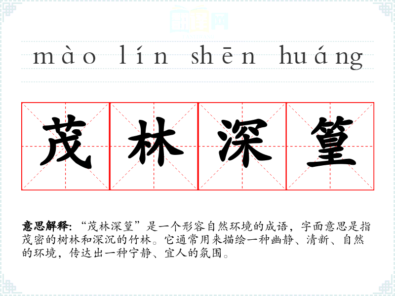 “茂林深篁”出自唐代诗人王维的《山居秋暝》。在这首诗中,王维描绘了山中秋天的景色,表达了其对于自然的热爱与对宁静生活的向往。该成语的使用反映了古代文人对自然环境的重视和对田园生活的向往。