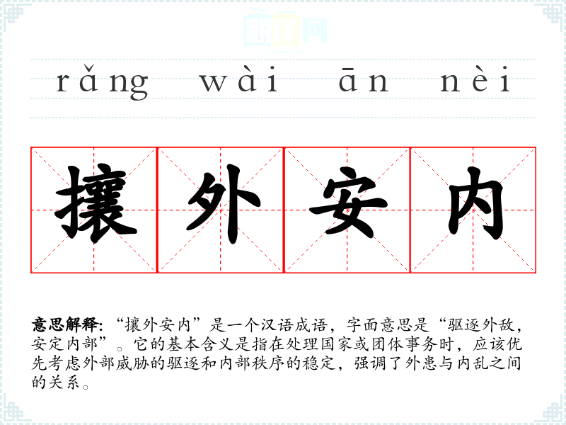 - 同义成语:安内攘外(强调内部安定同样重要)。