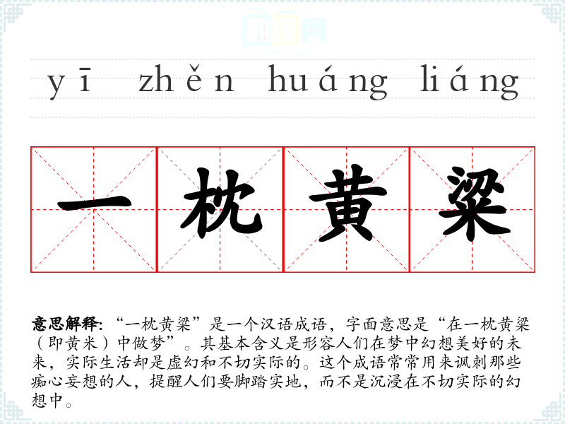 “一枕黄粱”是一个汉语成语,字面意思是“在一枕黄粱(即黄米)中做梦”。其基本含义是形容人们在梦中幻想美好的未来,实际生活却是虚幻和不切实际的。这个成语常常用来讽刺那些痴心妄想的人,提醒人们要脚踏实地,而不是沉浸在不切实际的幻想中。