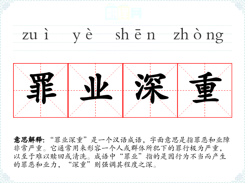 | 罪业深重 | 指做了很大的坏事,犯了很大的罪。 |