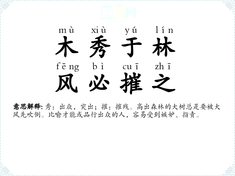 兰:兰草;秀:开花;败:衰败。兰草要开花,但秋风使之凋谢。比喻好人做好事而遭坏人陷害。 |