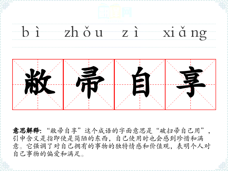 - 在这个快节奏的时代,我们应该学会珍惜自己所拥有的,真正理解“敝帚自享”的意义。