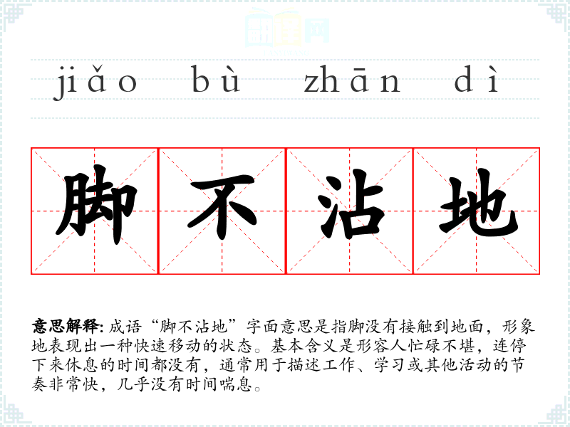 - 文学作品:在小说中描写主角忙于工作、应酬时,可以用“脚不沾地”来形容其生活状态。