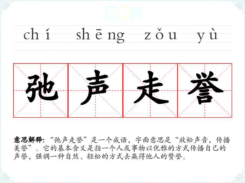 “弛声走誉”是一个成语,字面意思是“放松声音,传播美誉”。它的基本含义是指一个人或事物以优雅的方式传播自己的声誉,强调一种自然、轻松的方式去赢得他人的赞誉。