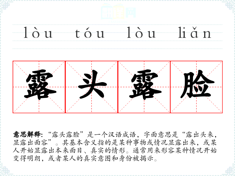 “露头露脸”没有明确的历史典故来源,但其构成的字词在古代文学中常常用来形容事情的真相或本质被揭示。成语中的“露头”可以理解为事物的初步显露,而“露脸”则更强调了显露的完整性和真实性。