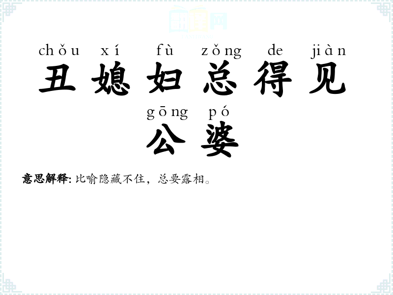公姑:公婆。比喻害怕见人而不得不见人。 |