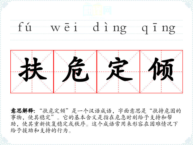 | 扶危定倾 | 指在国家危殆将倾覆之时扶持之使安定。 |