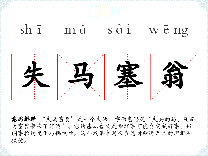 - 生活总是充满变数,我们应当接受“失马塞翁”所带来的无常。