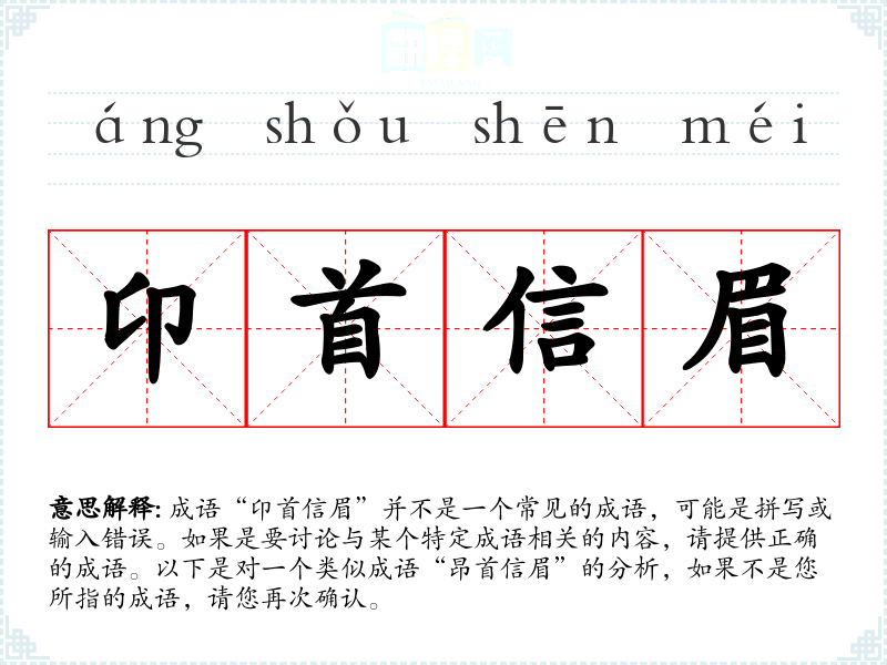 成语“卬首信眉”并不是一个常见的成语,可能是拼写或输入错误。如果是要讨论与某个特定成语相关的内容,请提供正确的成语。以下是对一个类似成语“昂首信眉”的分析,如果不是您所指的成语,请您再次确认。