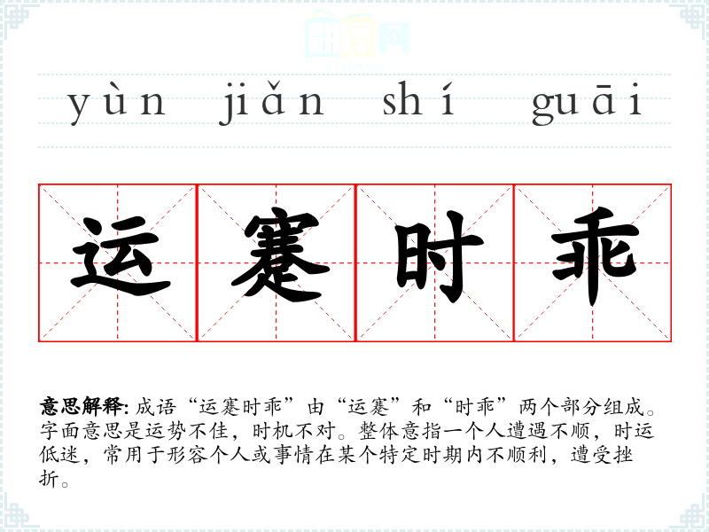 - 反义成语:运亨时达、如鱼得水、顺风顺水等,表示运势良好,事情顺利。