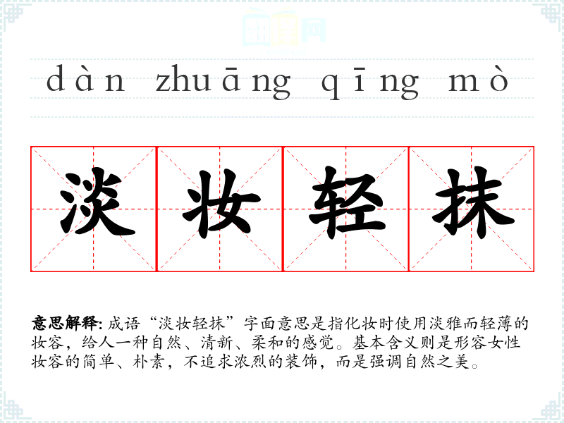 通过对“淡妆轻抹”的学,我深刻理解到自然美在现代社会中的重要性。这不仅是对外表的追求,更是对内心自信的体现。在我的语言学和表达中,能够灵活运用这样的成语,不仅丰富了我的词汇量,也让我在交流中更加注重言辞的选择与表达的准确性。
