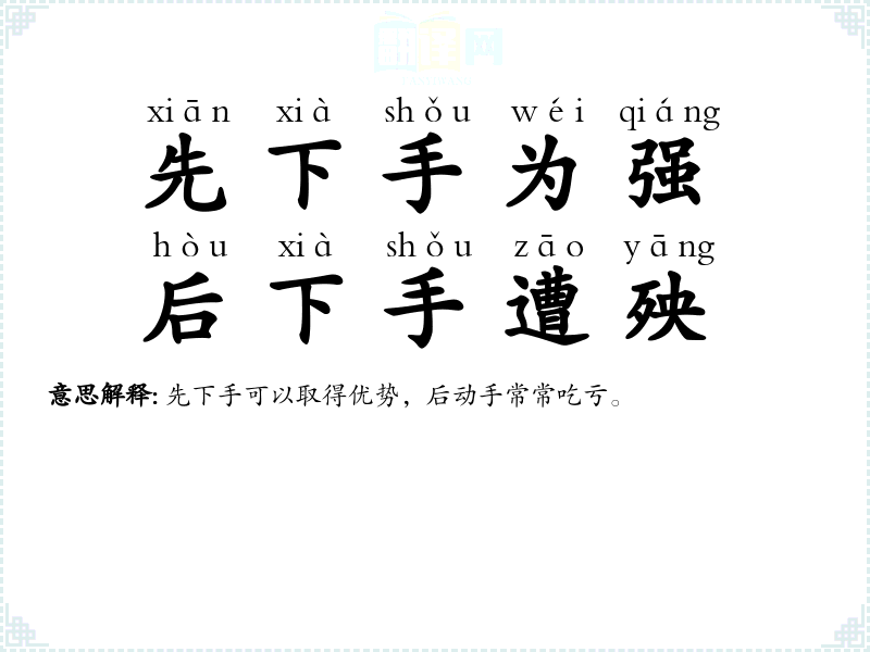 争:争夺;强:优胜;好:喜爱。争为强者,事事处处都喜欢超过和压倒别人。 |