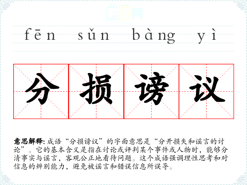 提到“分损谤议”,我常常联想起一些社交媒体上的争论,很多时候人们因为没有深入研究而被误导。这个成语让我感到一种警醒,鼓励我在面对各种信息时,要有自己的判断,不被他人的意见左右。