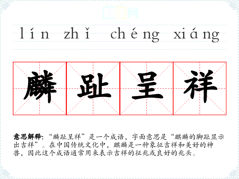 看到“麟趾呈祥”这个成语,我常常联想到美好的未来和幸福的生活。它激发了我对吉祥和希望的渴望,也提醒我珍惜当下的美好时光。