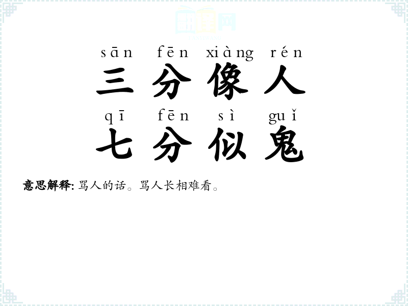 骂人的话。骂人长相难看。 |