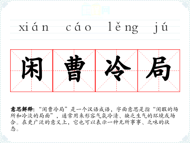 - 日常对话:例如,朋友聚会时如果气氛冷淡,可以用“闲曹冷局”来形容。