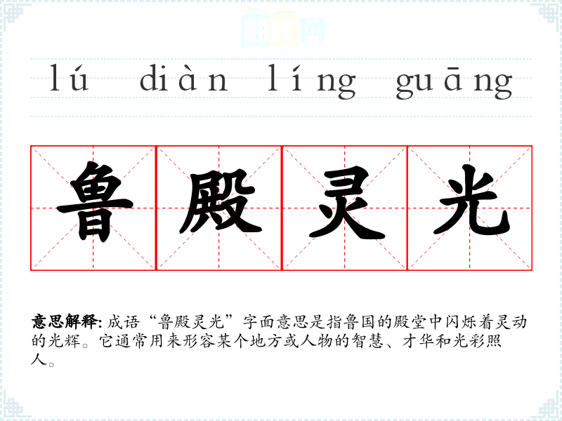 “鲁殿灵光”源自**历史文化,特别是在儒家思想中,鲁国是孔子的故乡,代表着智慧和文化的殿堂。成语可能与对孔子及其思想的崇敬有关,强调智慧的光辉和影响力。