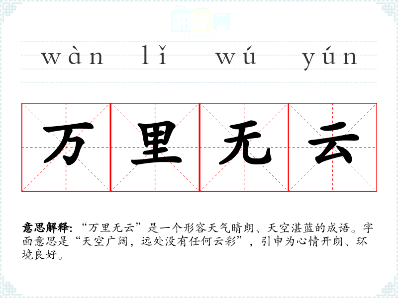 - 日常对话:用来形容天气好,比如在聊天时说:“今天真好,万里无云,适合去郊游。”