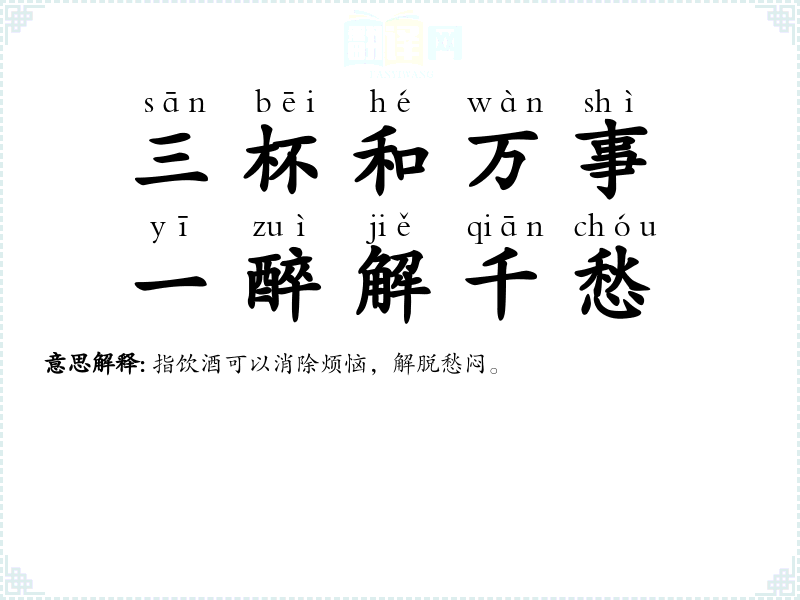 | 三杯和万事,一醉解千愁 |