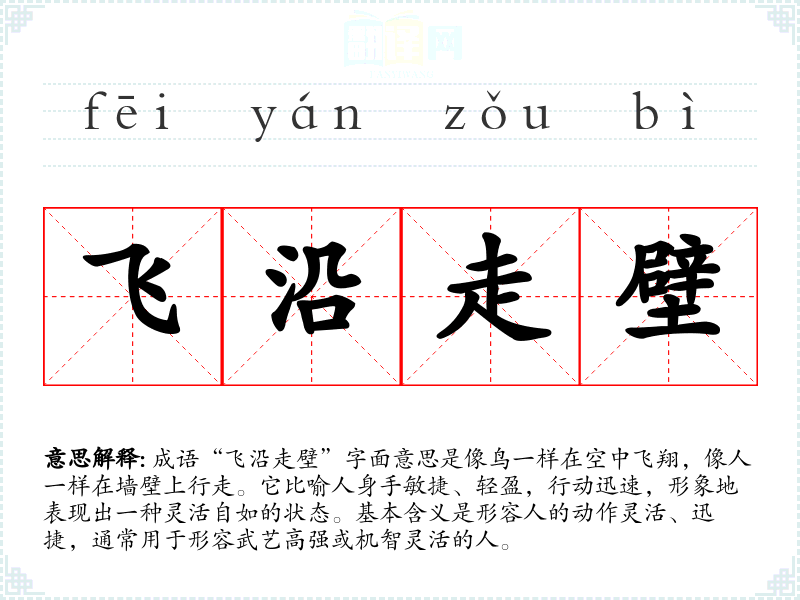 通过对“飞沿走壁”的学,我认识到这个成语不仅仅是对身体灵活性的描述,更是对人生一种积极态度的体现。在语言学中,这种成语的理解与运用,能够丰富我的表达方式,使我的语言更具表现力和生动性。