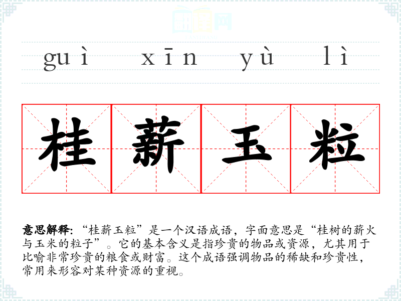 “桂薪玉粒”并不是一个广为人知的成语,可能没有明确的历史典故或出处。根据字面的解释,成语中的“桂薪”可以联想到桂树的木材,象征高贵和稀有;“玉粒”则象征着珍贵的粮食。此成语的构造可能是为了强调稀有而珍贵的资源。