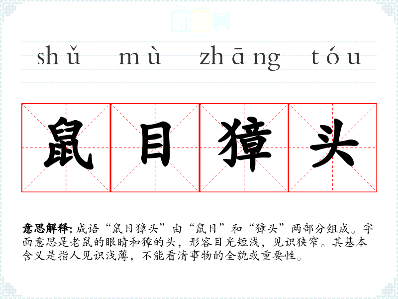 通过对“鼠目獐头”的学,我意识到在语言学和表达中,理解成语的深层含义至关重要。它不仅能丰富我们的表达,还能帮助我们在思维上更加全面,有助于培养长远的视角。