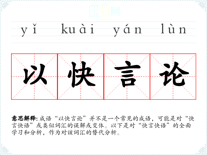 成语“以快言论”并不是一个常见的成语,可能是对“快言快语”或类似词汇的误解或变体。以下是对“快言快语”的全面学*和分析,作为对该词汇的替代分析。