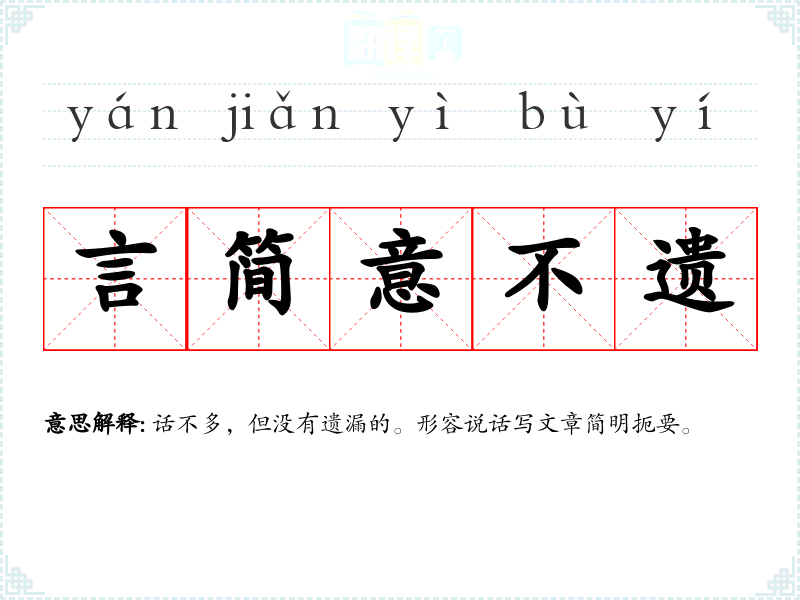 | 言不尽意 | 情意曲折深远,言语难以全部表达。常用于书信末尾,表示说的话没能把意思都表达出来。 |