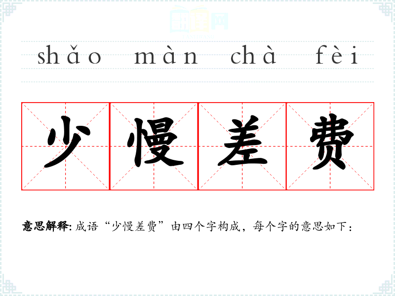 成语“少慢差费”由四个字构成,每个字的意思如下: