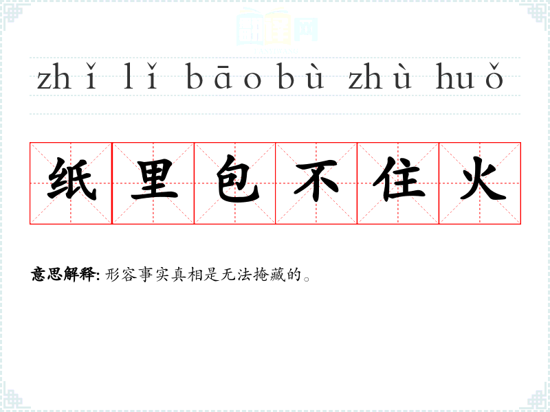 | 纸包不住火 | 比喻事实是掩盖不了的。 |