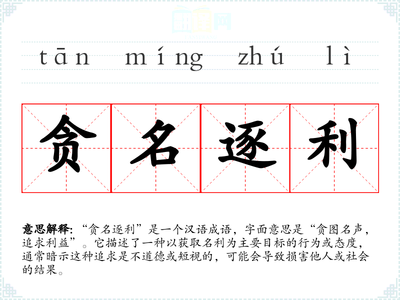 | 贪名逐利 | 贪图好的名声,追逐个人私利。 |