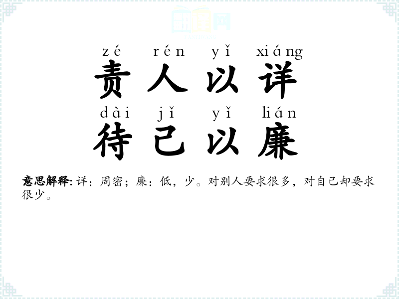 详:周密;廉:低,少。对别人要求很多,对自己却要求很少。 |