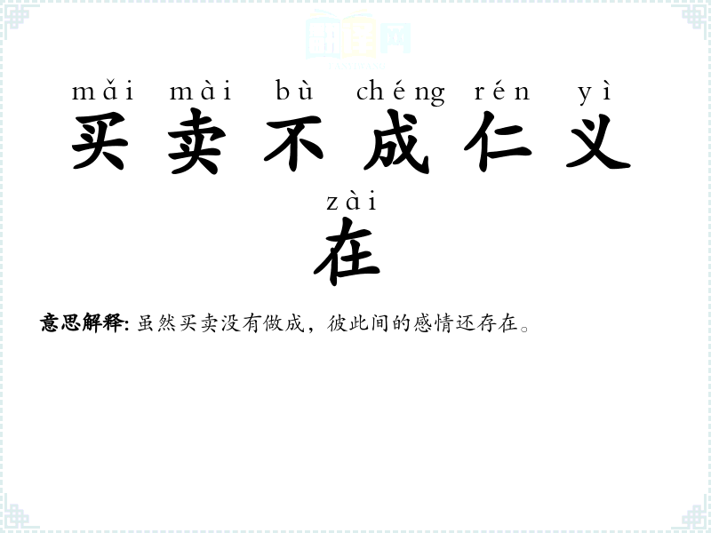 交易:做生意;仁义:仁爱和正义。生意虽没有做成,但感情和义气还是存在的。 |