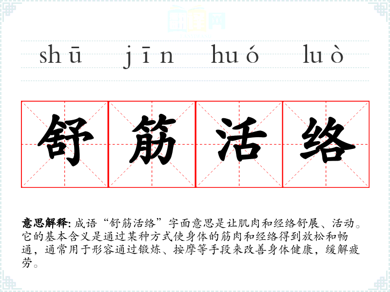 - 日常对话:人们在谈论工作压力或生活疲劳时,可以提到需要“舒筋活络”。