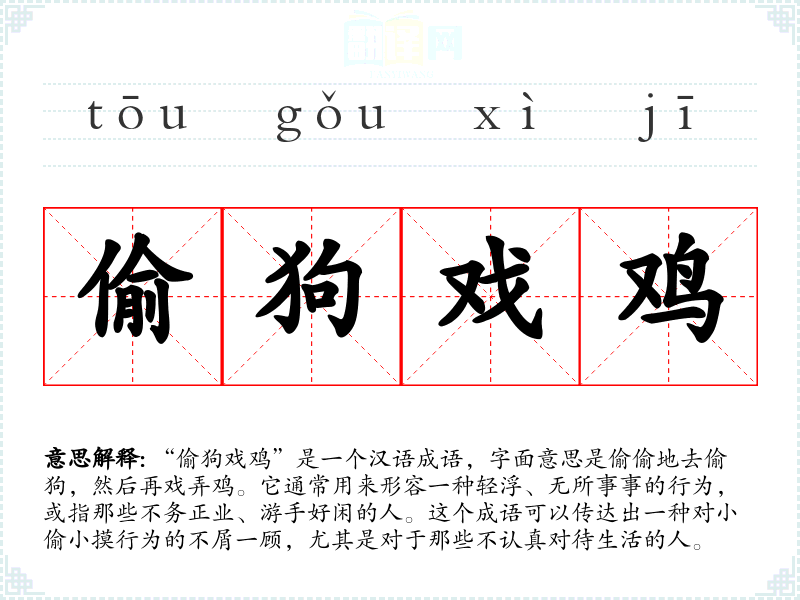 在**传统文化中,劳动被视为美德,而“偷狗戏鸡”暗示着对这种美德的背离。随着社会的发展,人们对待工作和生活的态度也在变化。现代社会中,追求工作与生活的平衡,使得这个成语在某些情况下仍具有警示意义,提醒人们珍惜时间和机会。
