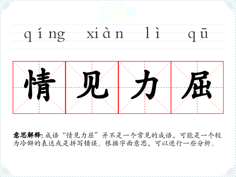 成语“情见力屈”并不是一个常见的成语,可能是一个较为冷僻的表达或是拼写错误。根据字面意思,可以进行一些分析。