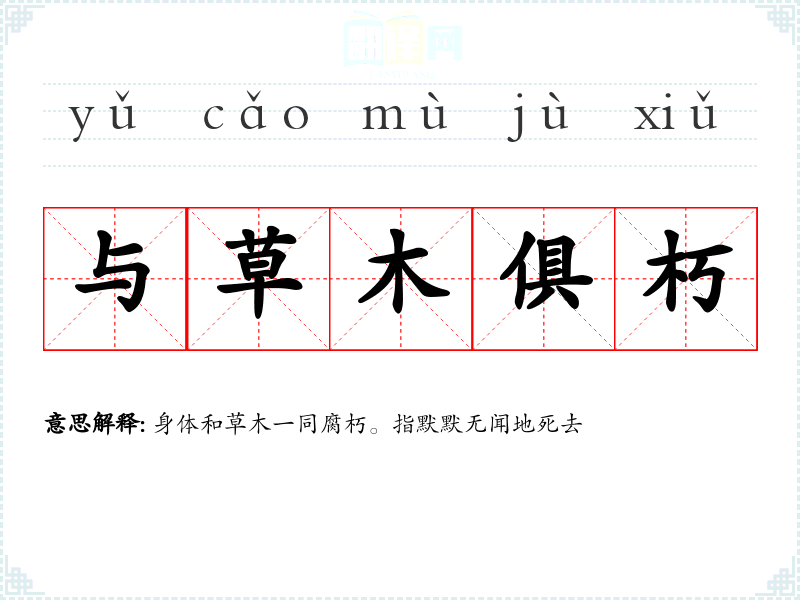 俱:全,都。和草木一起变成灰。形容人生前无所作为,死后也默默无闻。 |