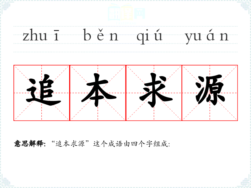| 追本求源 | 追:追究;本:根本;求:探求。追究事情发生的根源。 |