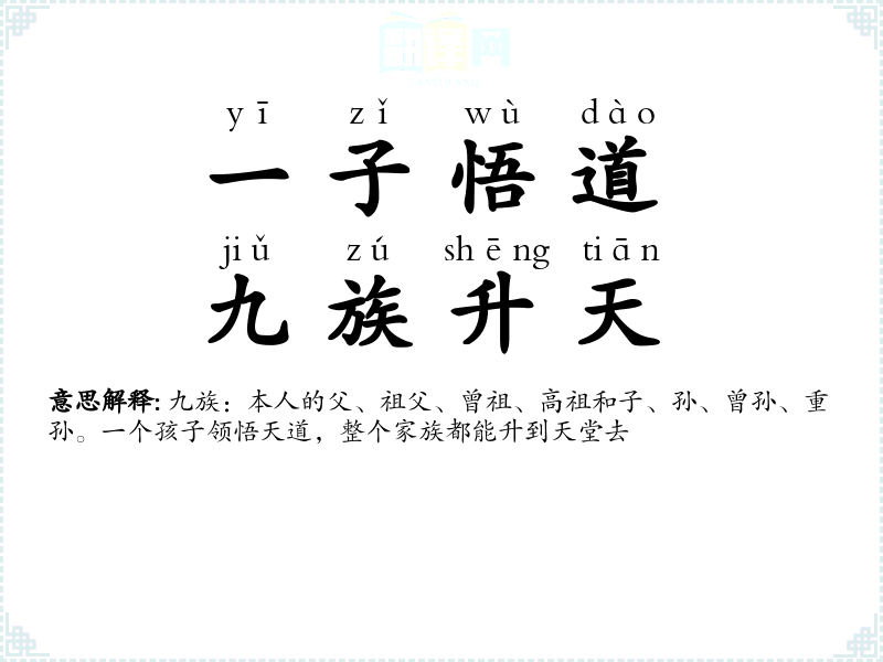 | 一子悟道,九族升天 |