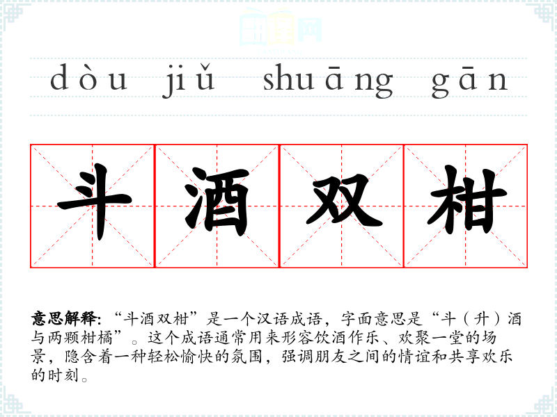 - 日常对话:朋友聚会时可以用来表达欢聚的氛围,例如“今晚我们一起斗酒双柑,畅聊人生。”