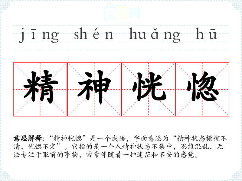 在英语中,可以用“distracted”或“absent-minded”来表达类似的状态,但这些词汇的使用场景和文化内涵可能与“精神恍惚”有所不同,后者更强调一种情感上的迷失与不安。
