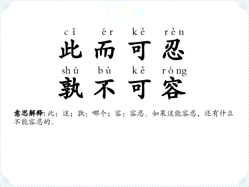 是:这个;孰:那个。如果这个都可以容忍,还有什么不可容忍的呢?意思是绝不能容忍。 |