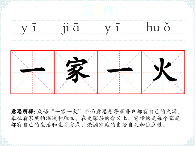 - 日常对话:在讨论家庭责任或个人独立时,可以提及“一家一火”来强调每个家庭的独特性。